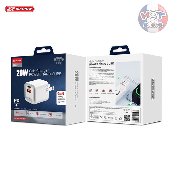 Sản phẩm hiện đang được bán tại HQT Store. Bên cạnh sản phẩm Củ sạc nhanh PD 20W Drapow GA23 GaN Charger Nano Cube 2 cổng C USB-A, chúng tôi còn cung cấp rất nhiều sản phẩm Phụ Kiện Củ Sạc, Đế Sạc. Quý khách có thể trực tiếp ghé thăm cửa hàng tại địa chỉ 76/46 Xóm Đất, Phường 8, Quận 11, TPHCM. Hoặc truy cập website https://www.phukienhqt.vn hay liên hệ hotline 0364502205 để biết thêm thông tin chi tiết về các sản phẩm và những chương trình khuyến mãi, ưu đãi hấp dẫn.